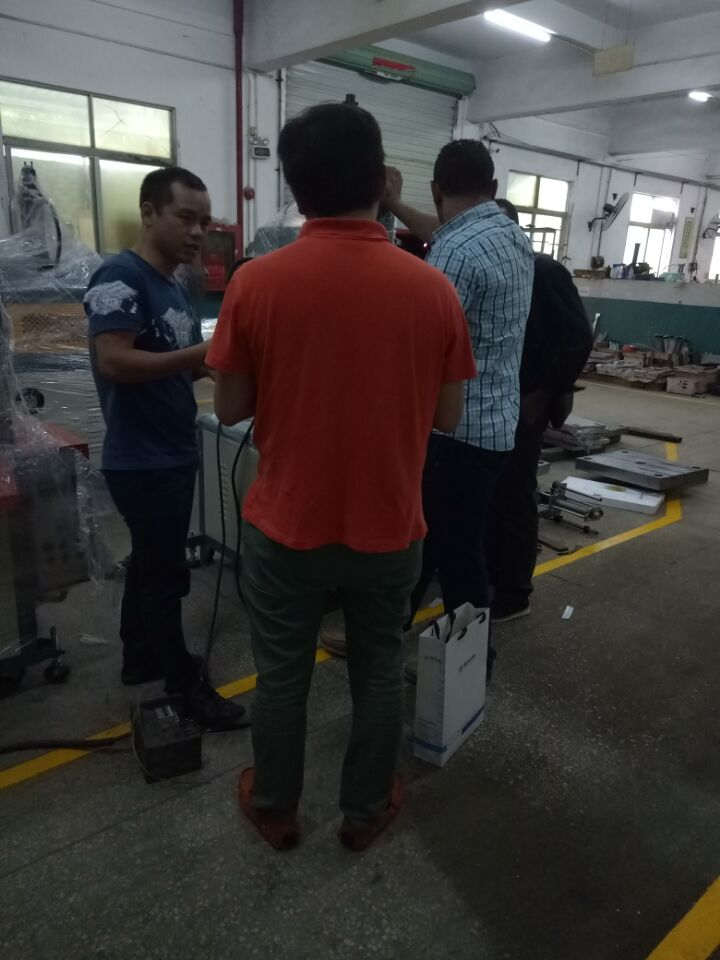 客戶考察圍觀員工測(cè)試機(jī)械設(shè)備