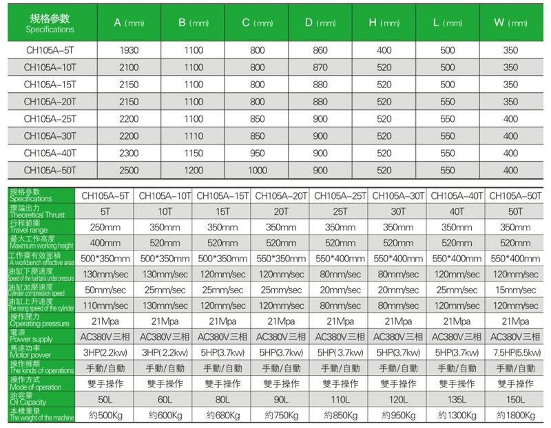 CH105A四柱三板油壓機系列特點及優點